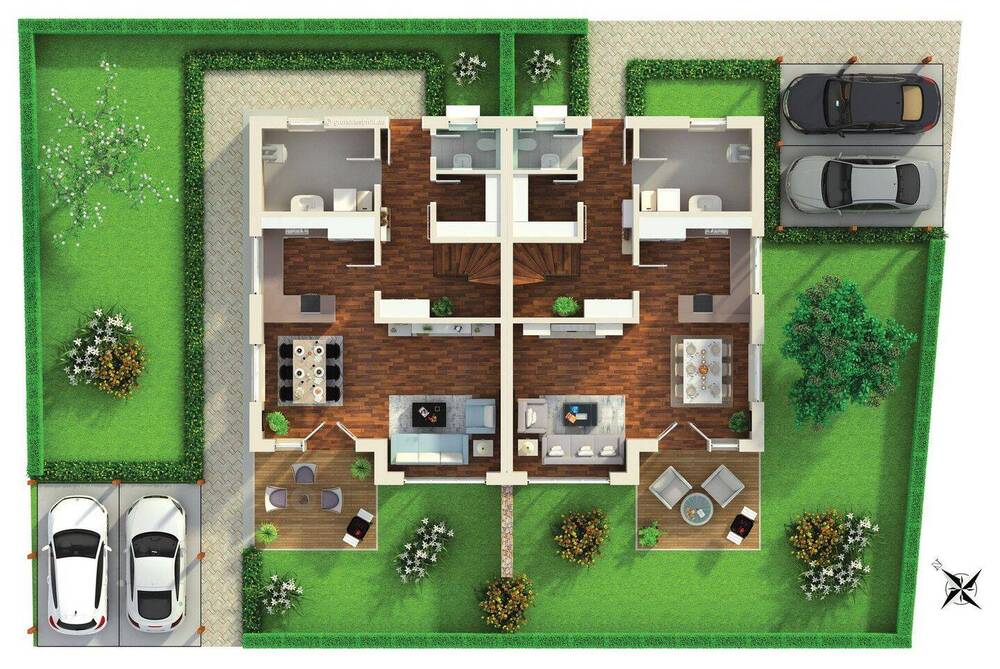 Küche - Wohnen - Essen 3D Plan - Doppelhaushälfte mit 152,00 m² in Schwaig zum Kaufen