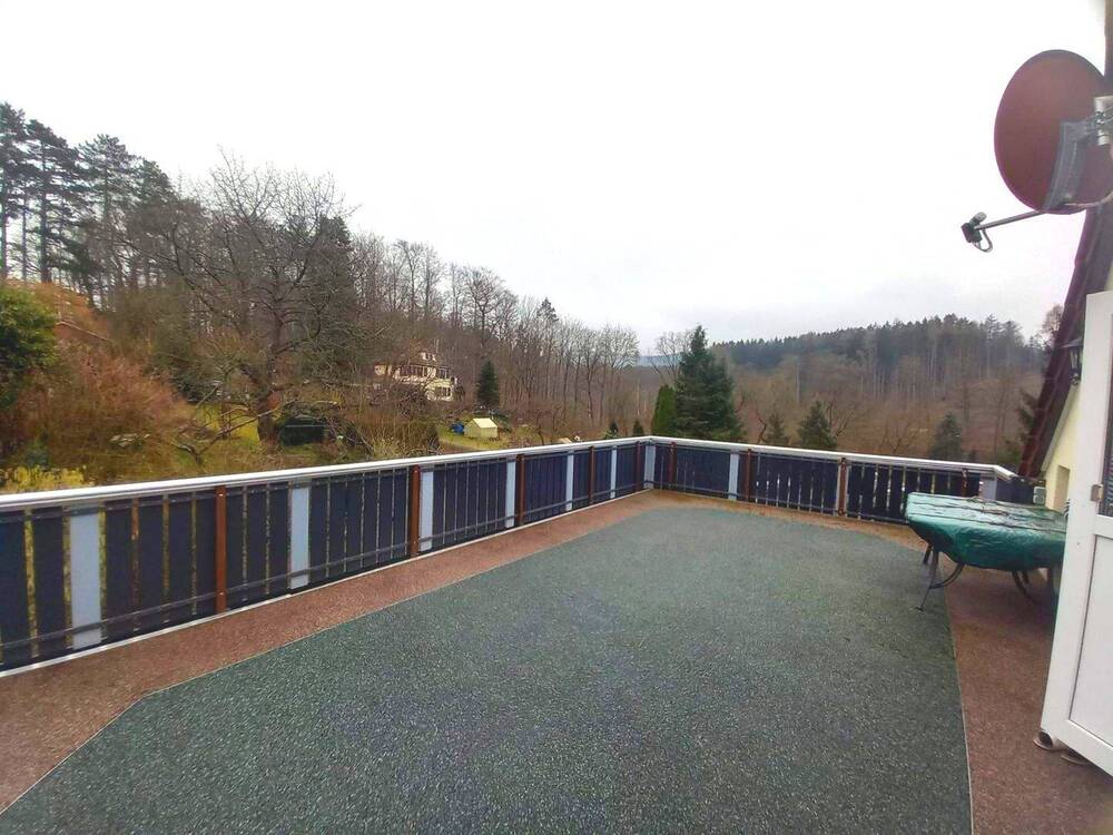 Sie befinden sich hier: *Weitblick von der Dachterrasse* - Gepflegtes Einfamilienhaus auf idyllisch angelegtem Grundstück in schöner Ortsrandlage sucht neue Eigentümer in Georgenthal - 26DM59SRS6RG | 1A-Immobilienmarkt.de