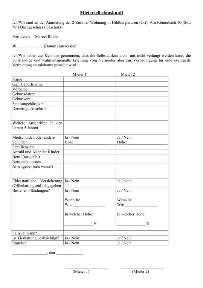 Angebot zur Miete
