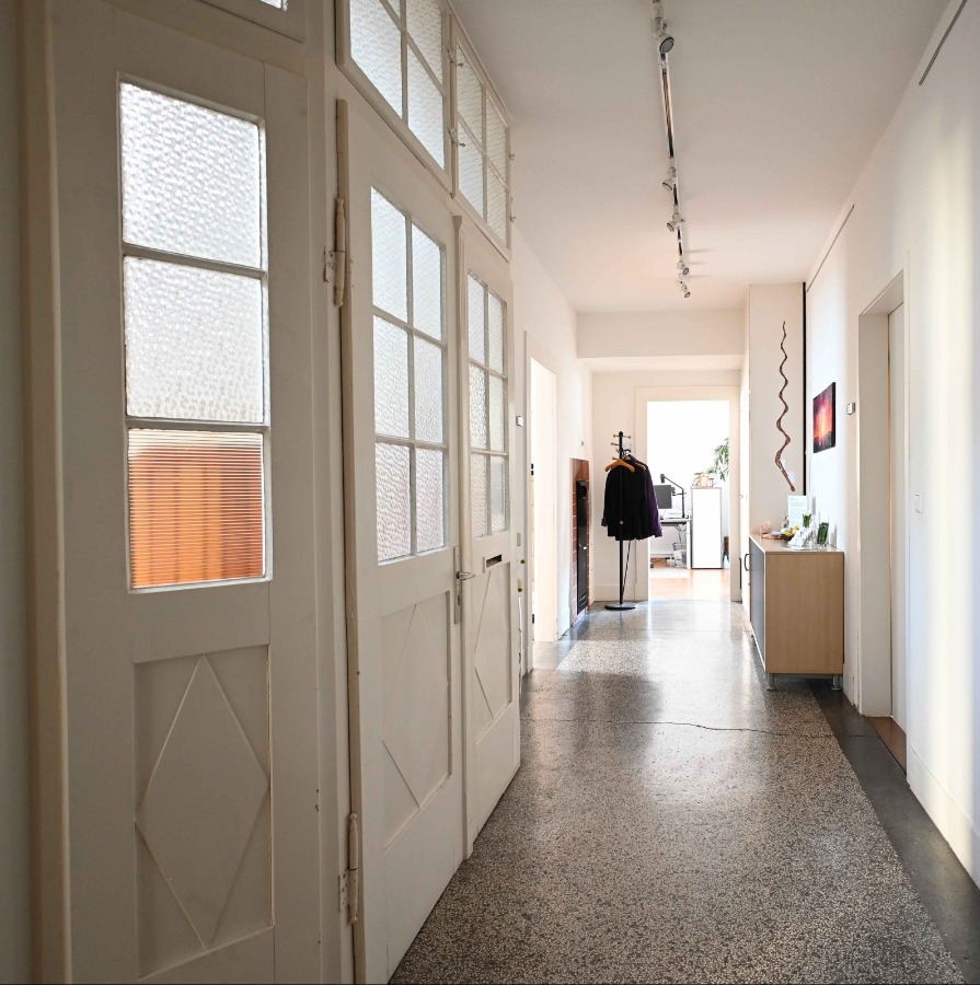 Und das beste ist das Gefühl, das du hier haben kannst: das wird erzeugt durch eine Deckenhöhe von 2, 85 cm, Stuck an den Decken, vielen tollen Holz- und Terrazzo-Böden, durch alte stilvolle Holztüren, einige mit gemusterten Gläsern versehen.