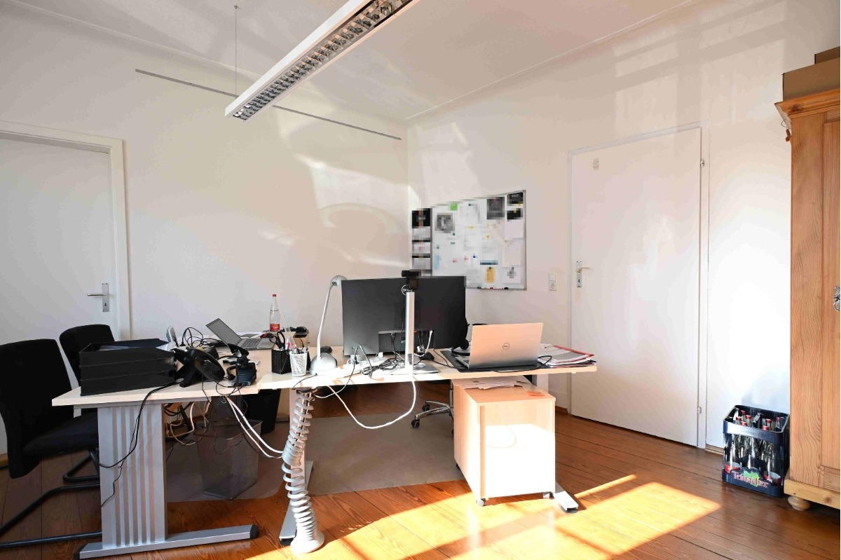 Das Büro, das eine Wohnung sein möchte: die Räume werden heute als Büros genutzt, waren bis vor ca. 12 Jahren aber eine Wohnung. Damit es wieder eine Wohnung sein könnte, müsste z.B. wieder ein Bad eingebaut werden, das heute fehlt. Die Flächen sind heute durch unser Maklerbüro genutzt. Damit kannst du sicher sein, dass wir dir wirklich fundiert und bereitwillig zu unseren Räumen Auskunft geben können. Wir haben uns hier immer sehr wohl gefühlt und wollen dem Verkauf auch wegen dem sehr guten Verhältnis zu dem Verkäufer nicht im Wege stehen. So sind die Flächen frei zum 01.10.2026.