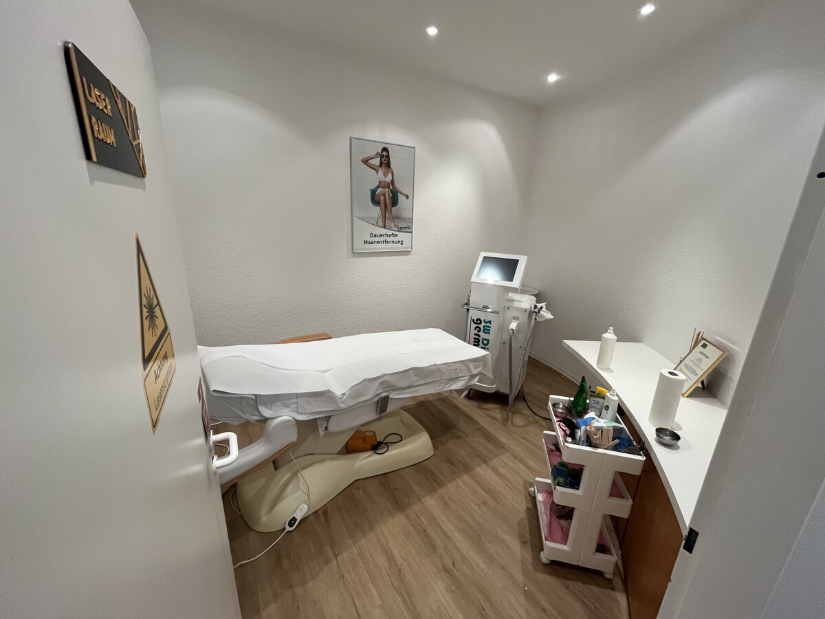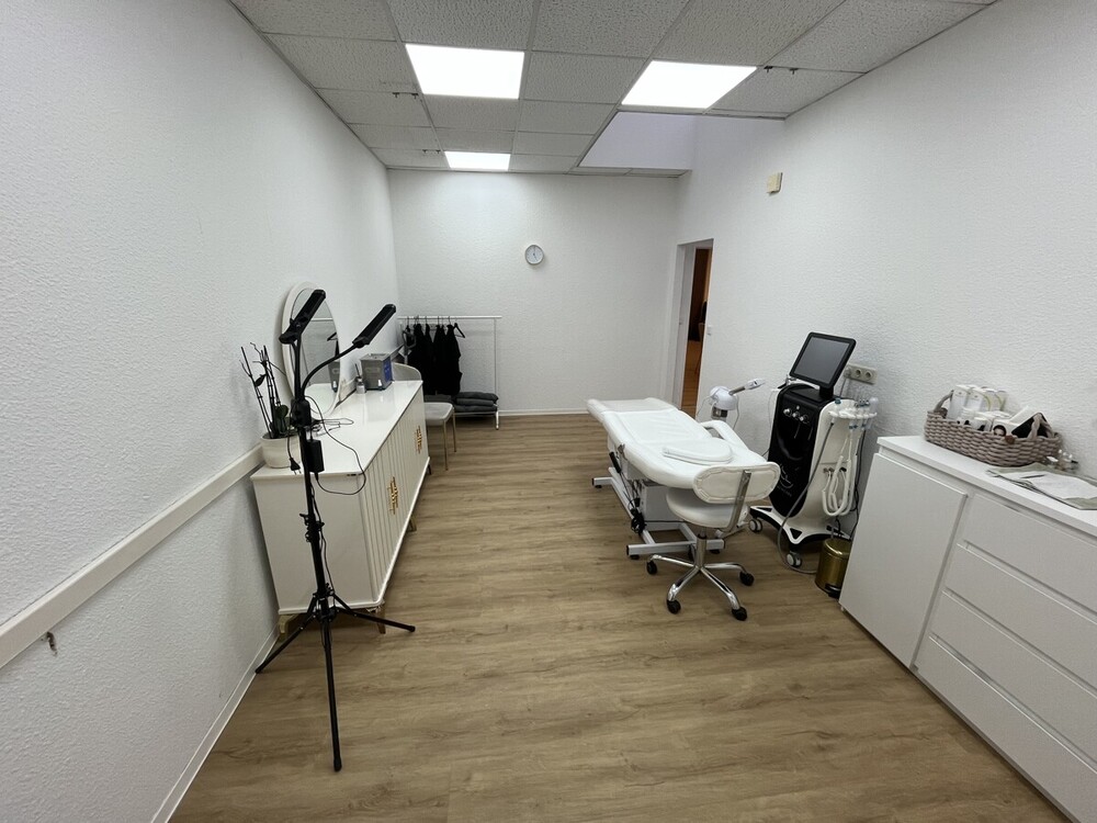Die im Erdgeschoss rechts gelegene Gewerbeeinheit wird derzeit als Praxiseinheit genutzt. Sie verfügt über einen großzügigen Empfangsbereich, drei Behandlungsräume sowie eine kleine Teeküche und separate Sanitärräume. Hochwertige Vinylböden in Eichenoptik, die im Jahr 2025 erneuert wurden, verleihen den Räumen ein modernes und freundliches Ambiente. Die Ausstattung ist auf eine praxis- und kundenorientierte Nutzung ausgerichtet.