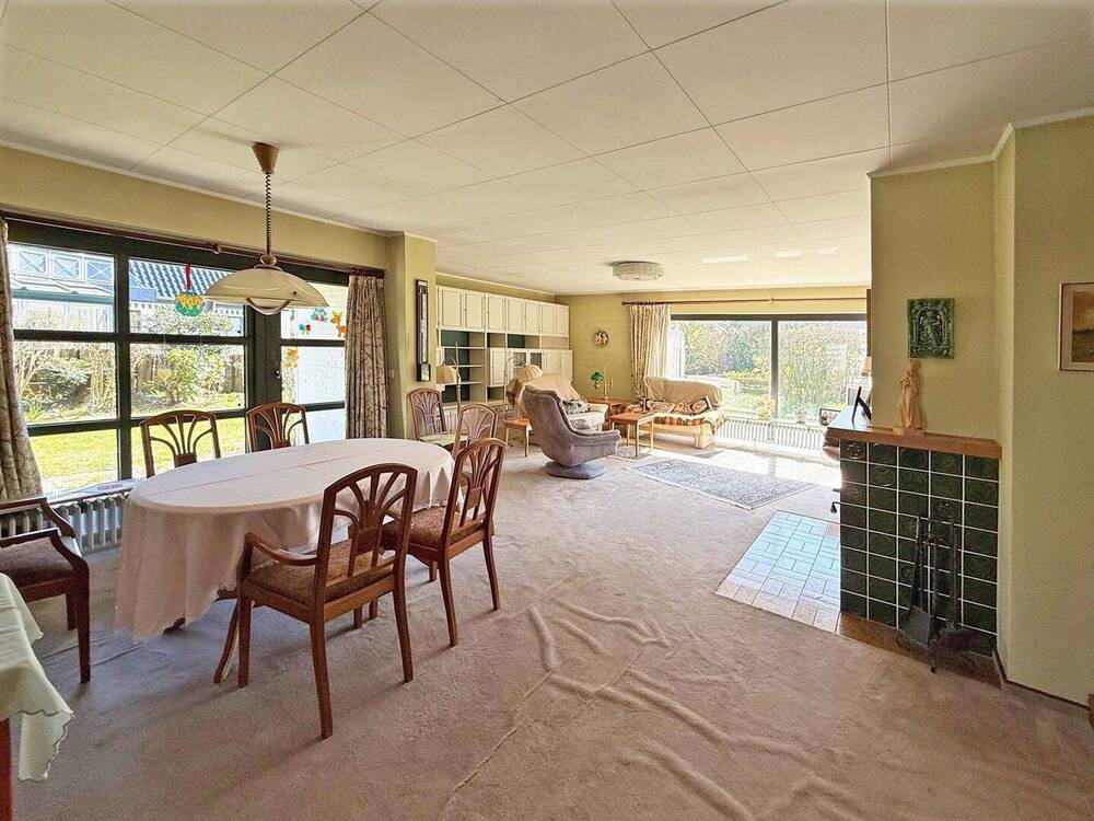 • Essbereich mit Kamin im Vordergrund -