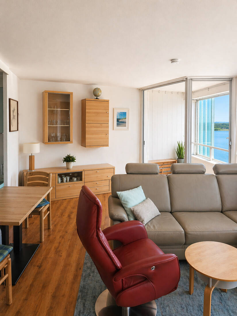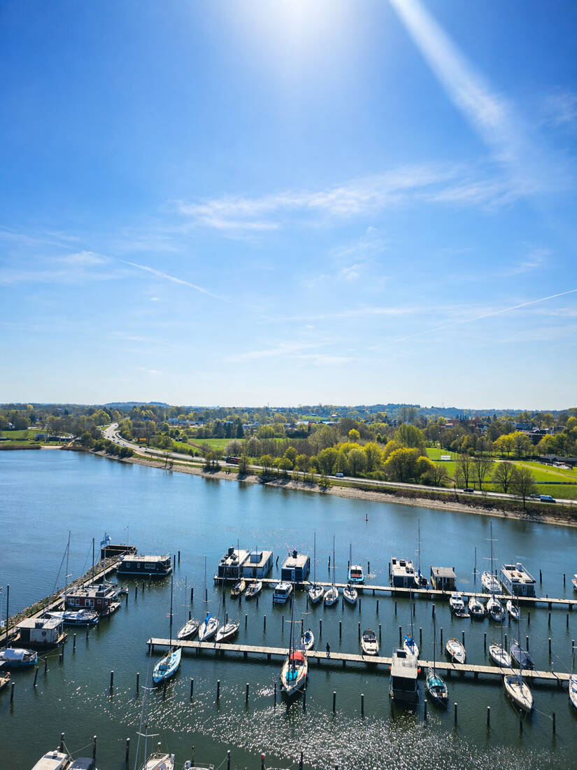 Blick auf die Marina - Leben über Schleswig! Wachwerden mit der Sonne im Gesicht. ETW für die Zukunft.