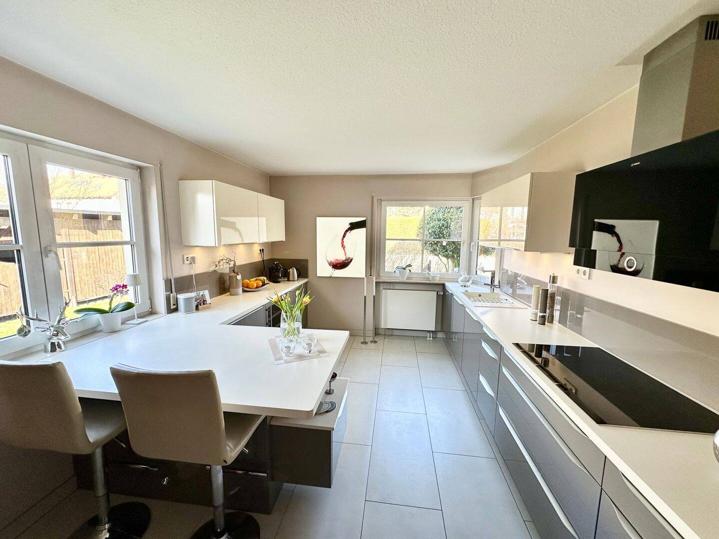 • große Wohnküche mit exklusiver Einbauküche -