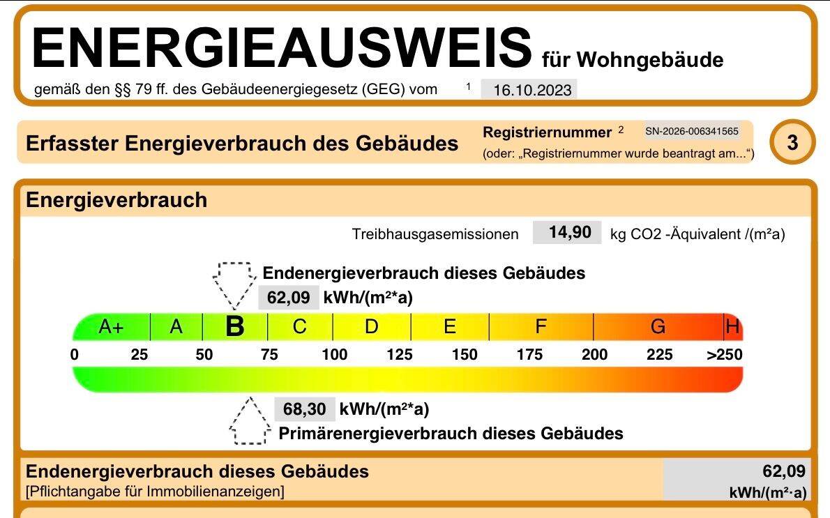 Energieverbrauchkennwert:62 kWh/(m²·a) kWh/(m²·a)