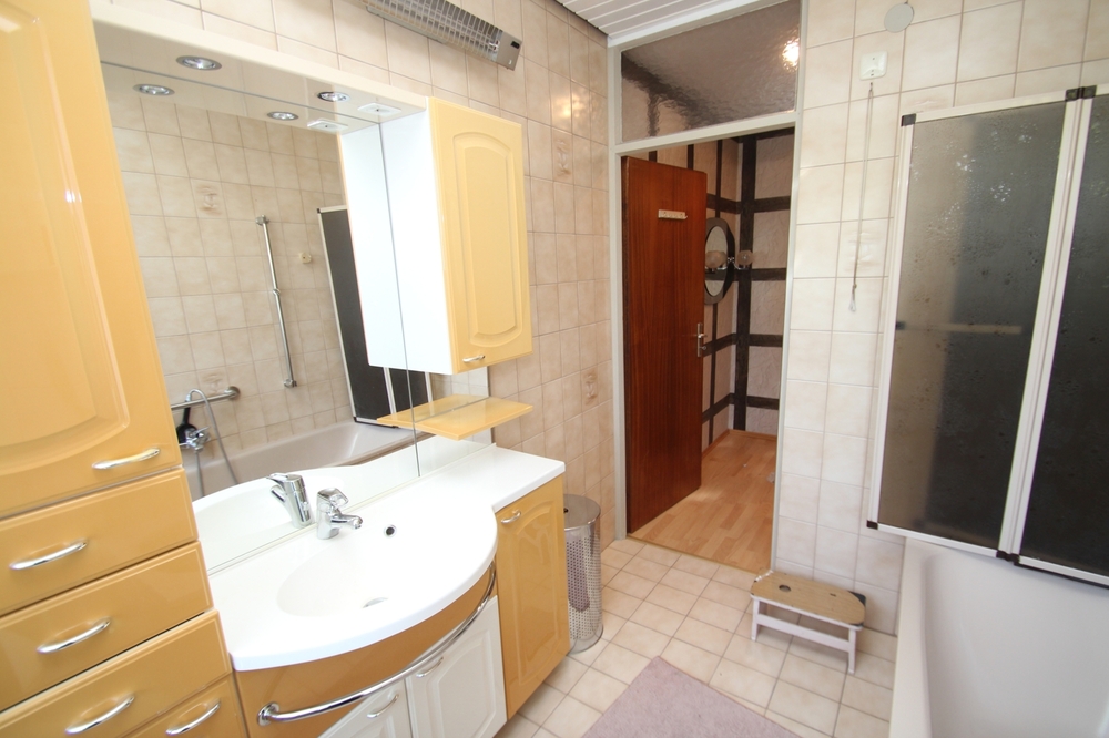 Allgemeine Beschreibung: Reihenmittelhaus, Wohnfläche ca. 104 m², Grundstück ca. 131m², Baujahr 1967, Ölheizung, Anbau von 1987, überdachte Terrasse - Garage mit elektr. Tor (15.000, -EUR) - abgetrennter Garten (gegenüber des Hauses), aber kein Alleineigentum