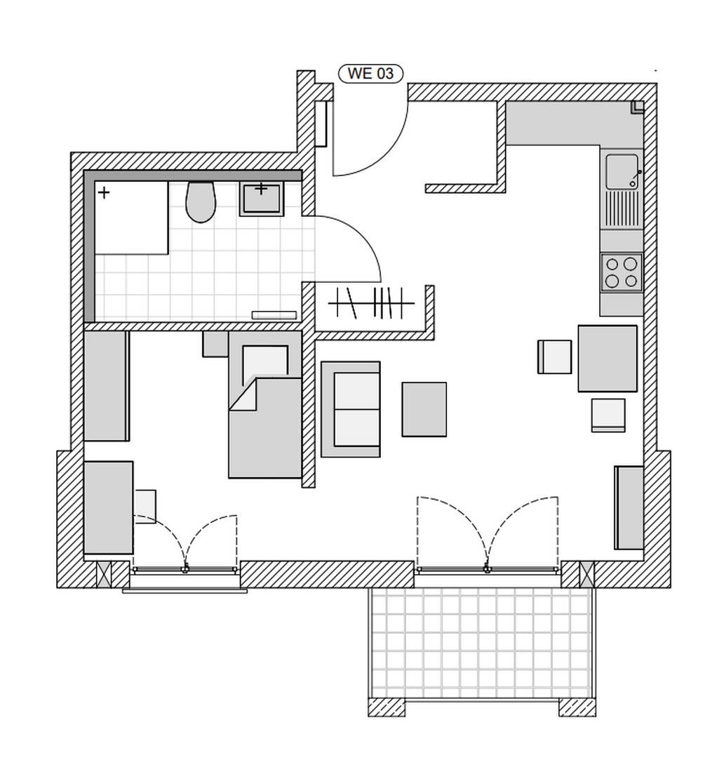 Zimmeranzahl :1 Wohnfläche :ca. 43,00 m² Baujahr :2024 Frei ab :01.07.2026 Etage :1 Balkon :