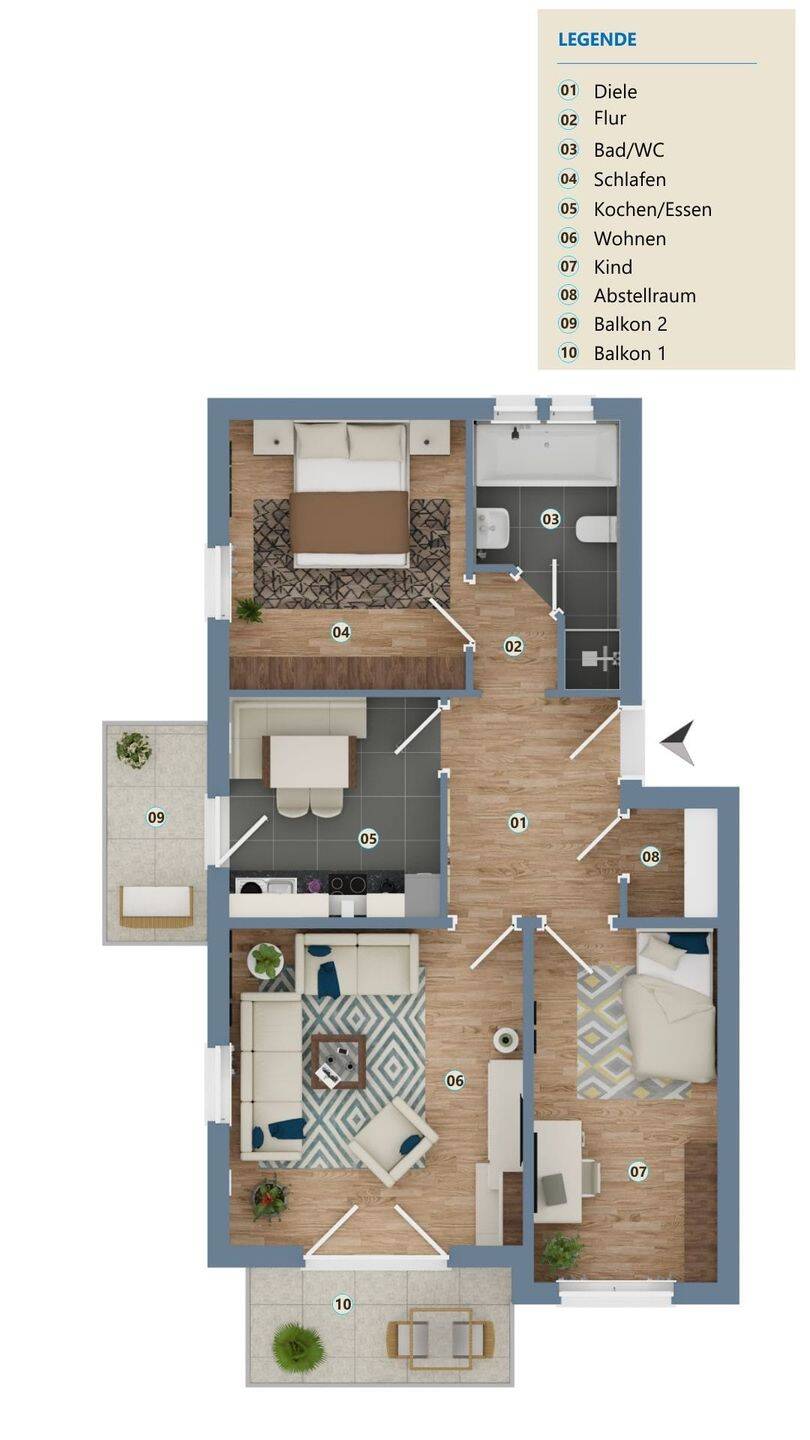 Zimmeranzahl :3 Wohnfläche :ca. 70,00 m² Baujahr :1995 Frei ab :01.08.2026 Etage :1 Balkon :