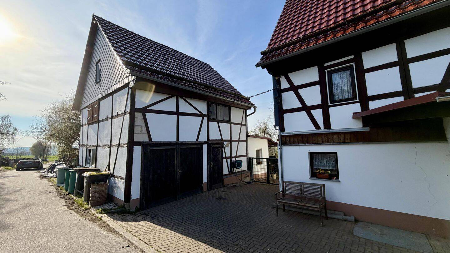 Außenansicht Wohnhaus und Scheune - Fachwerkidyll mit Garten, Wald & Weide