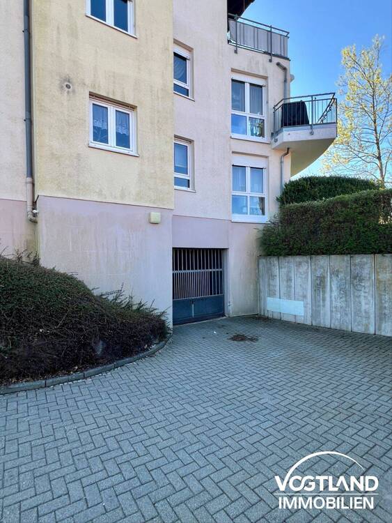 • Ansicht vorn mit Stellplatz - 2 Zimmer Etagenwohnung in Auerbach