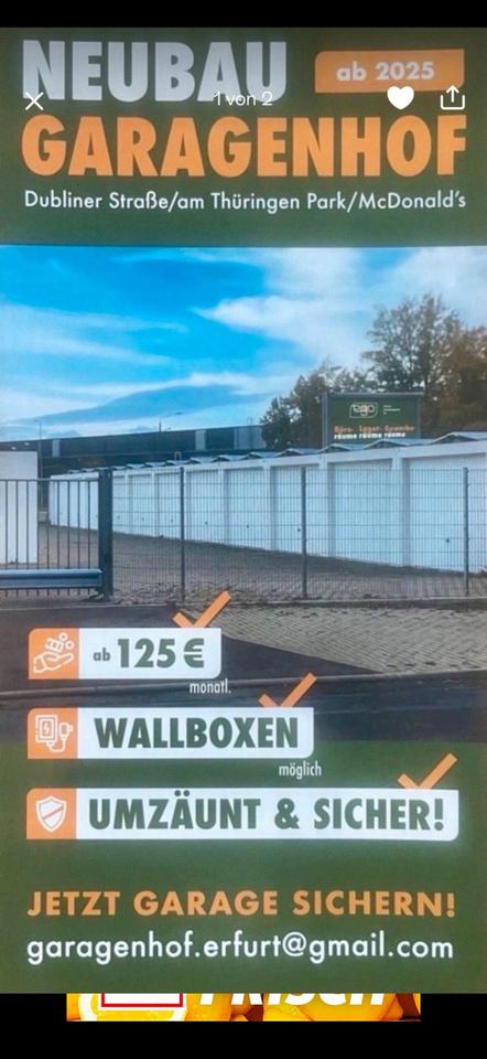 Sie befinden sich hier: Garage in Erfurt zu vermieten, massiv, Neubau, Wallbox in Erfurt Andreasvorstadt - 3389173778-197-3752 | 1A-Immobilienmarkt.de