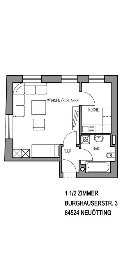 Sie befinden sich hier: Ruhige, lichtdurchflutete 1,5-Zimmer-Wohnung nahe Stadtplatz in Neuötting - 3391734631-203-6629 | 1A-Immobilienmarkt.de