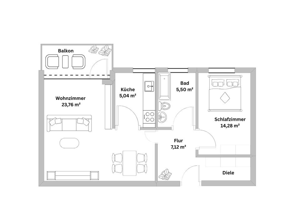 Zimmeranzahl :2 Gesamtgröße :ca. 57,00 m² Stand vom :28.04.2026