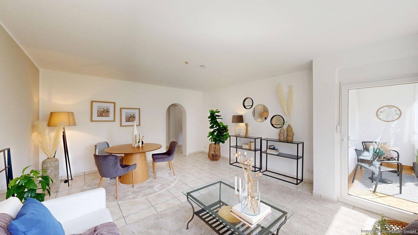 Heller Wohn- und Essbereich mit einladender Atmosphäre - Provisionsfrei für Käufer: 3-Zimmer-Erdgeschoss-Wohnung mit Loggia und Garage in Hamm Heessen