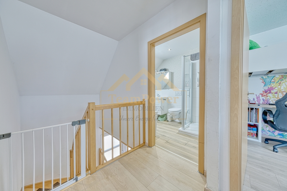 Ein besonderes Highlight stellt der ausgebaute Spitzboden dar, der zusätzliche Nutzfläche bietet und vielseitig verwendbar ist – beispielsweise als Hobbyraum oder Stauraum.