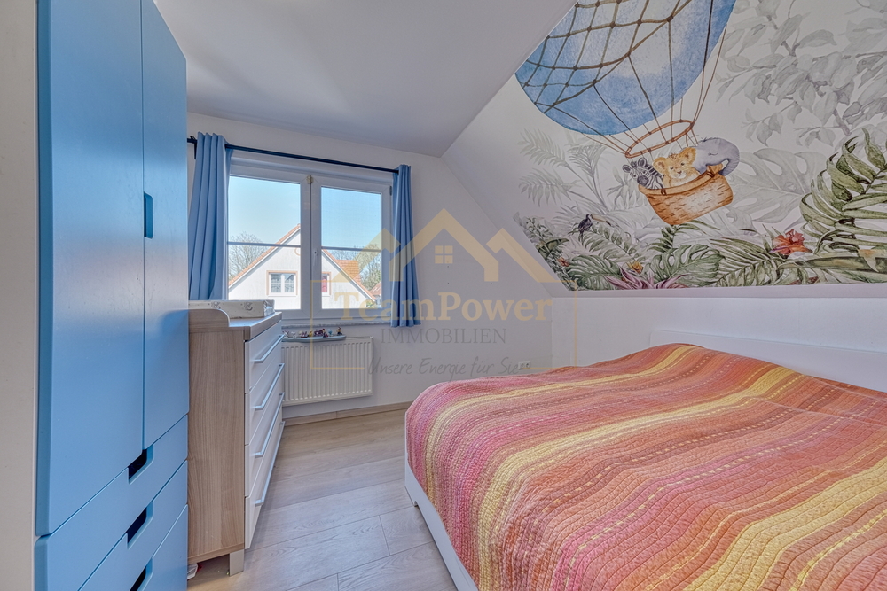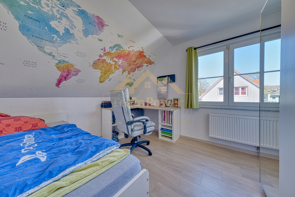 Im Dachgeschoss befinden sich das Schlafzimmer sowie zwei weitere Zimmer, die sich flexibel als Kinder-, Gäste- oder Arbeitszimmer nutzen lassen. Das moderne Vollbad ist ebenfalls auf dieser Ebene untergebracht und überzeugt mit einer zeitgemäßen Ausstattung.