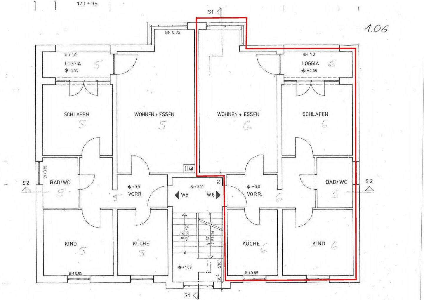 • Grundriss Geschoss - Wohnung markiert -