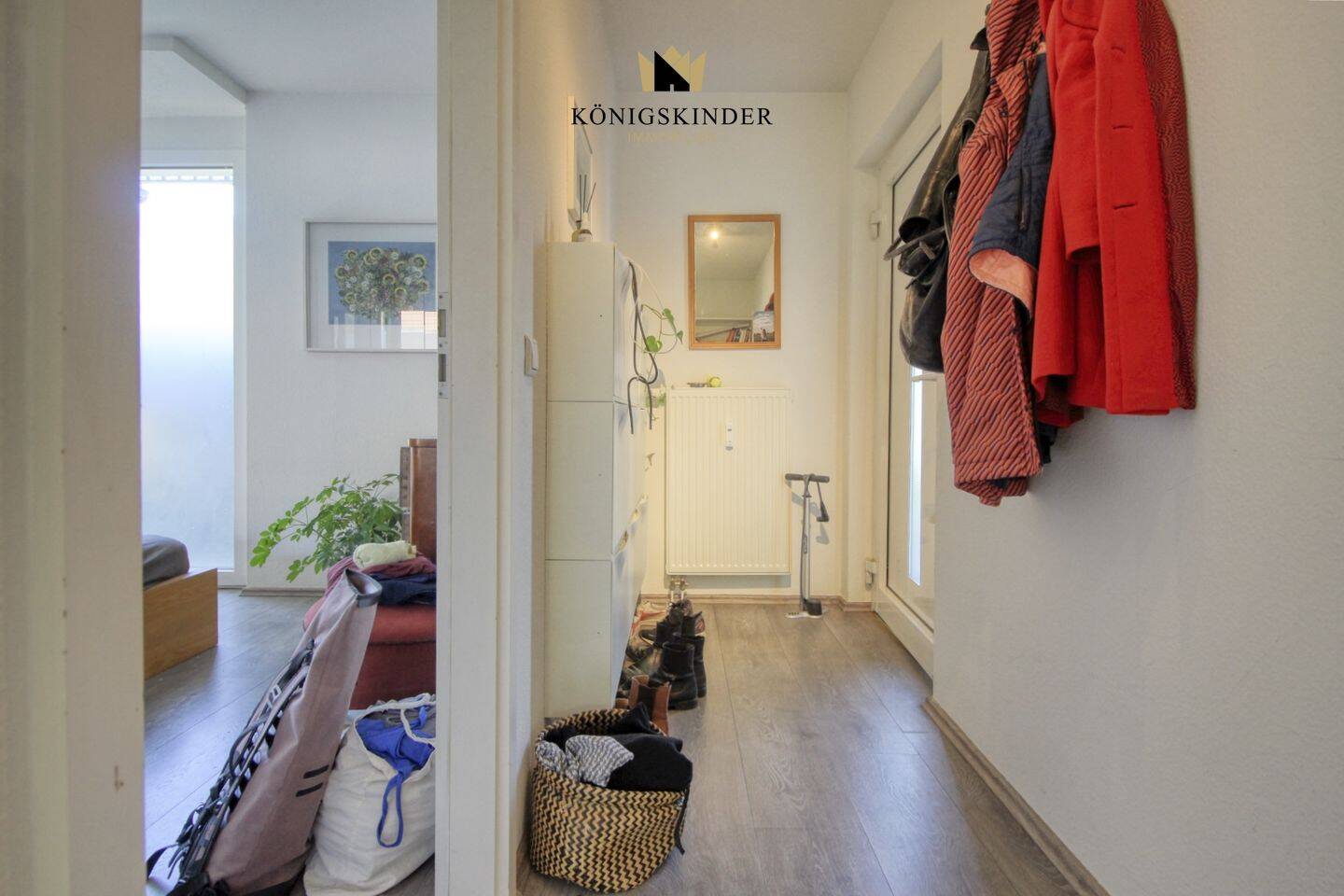 • heller Flur mit Einbauschränken -