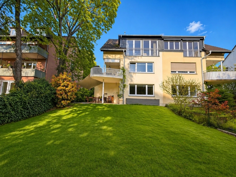 Die ursprünglich im Jahr 1952 errichtete Immobilie wurde 2005/2006 umfassend entkernt, modernisiert und von einem Dreifamilienhaus in ein großzügiges Einfamilienhaus umgewandelt. Durch die leichte Hanglage wirkt das Haus von der Straßenseite eher zurückhaltend, entfaltet jedoch im Inneren seine beeindruckende Größe mit rund 200 m² Wohnfläche, verteilt auf Gartengeschoss, Erdgeschoss und Obergeschoss. Ein weiteres Ausbaupotenzial bietet der Spitzboden mit einer Fläche von rund 55 m². In der Nachbarschaft wurden vergleichbare Flächen bereits erfolgreich ausgebaut, sodass auch hier zusätzliche Wohnfläche realisierbar erscheint.