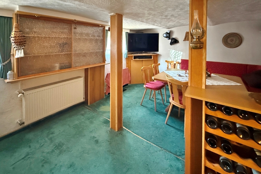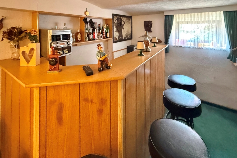 Im Kellergeschoss befinden sich ein weiteres Gäste-WC, ein praktischer Waschkeller sowie ein großzügiger Hobbyraum mit integrierter Bar – ideal für gesellige Abende oder als individueller Rückzugsort.