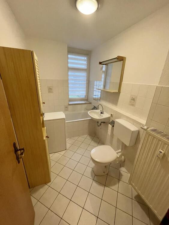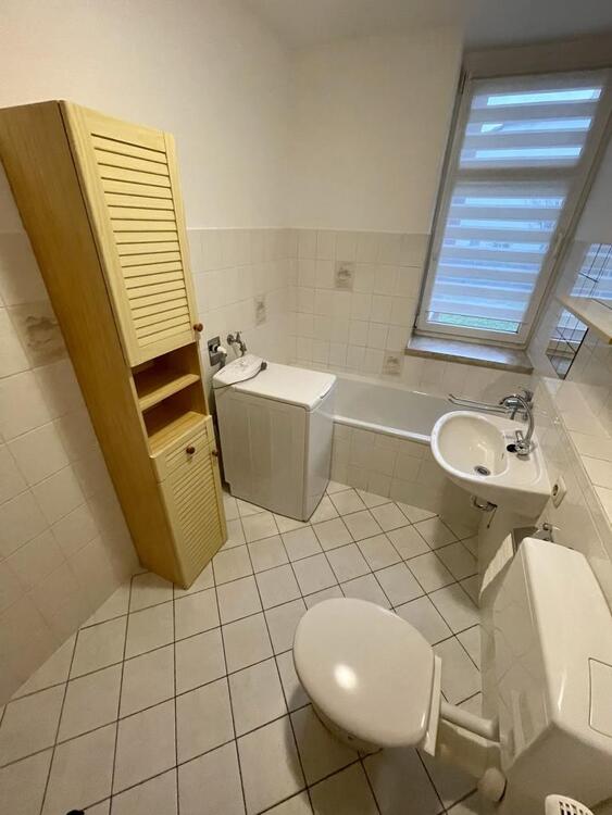 Die Wohnung verfügt über ein Wohnzimmer sowie einem separaten Flur und Küche. Das Bad, ebenfalls mit Fenster, ist mit einer Badewanne sowie einem Waschmaschinenanschluss ausgestattet.