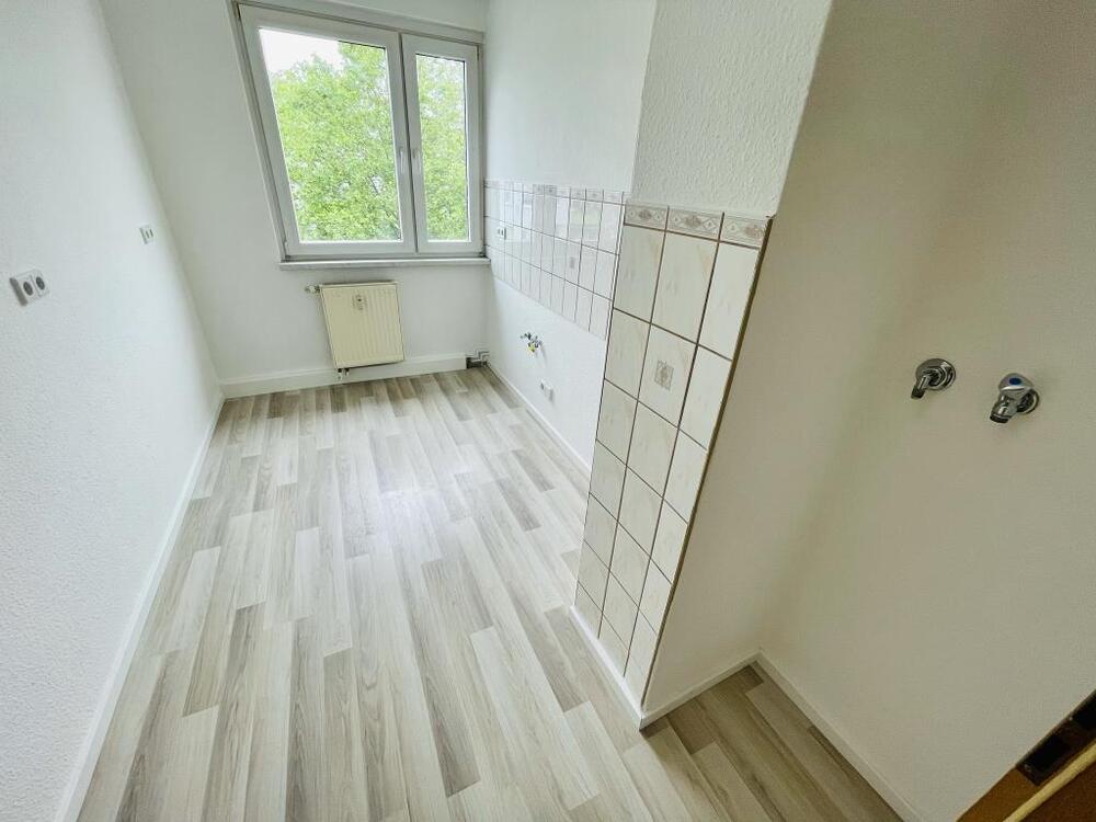 * Küche mit Fenster, Kunstoffboden, Fliesenspiegel & WM-Anschluss