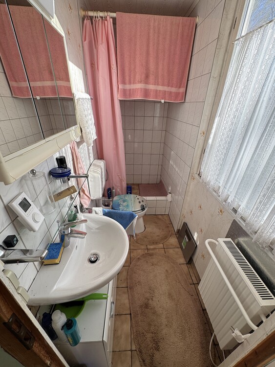 - Tageslichtbad mit Waschbecken, Dusche, WC und Elektroheizung