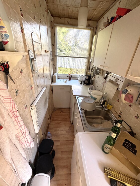 - Küche mit Fenster, Küchenzeile, E-Heizkörper und Warmwasserboiler