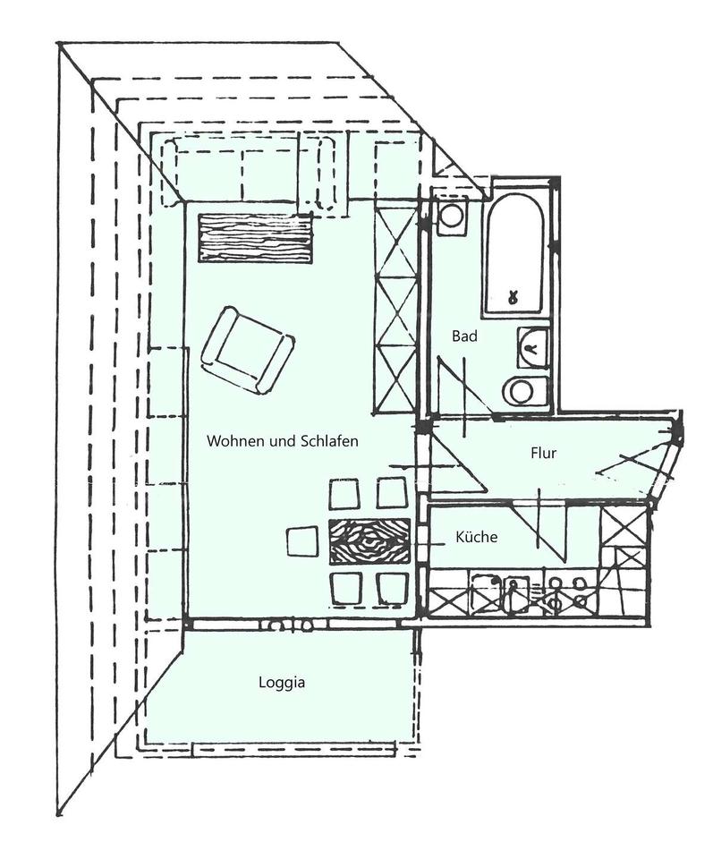 Sie befinden sich hier: Ländliche 1 Raum Wohnung mit Loggia in Wilkau-Haßlau - 3393584448-203-3802 | 1A-Immobilienmarkt.de