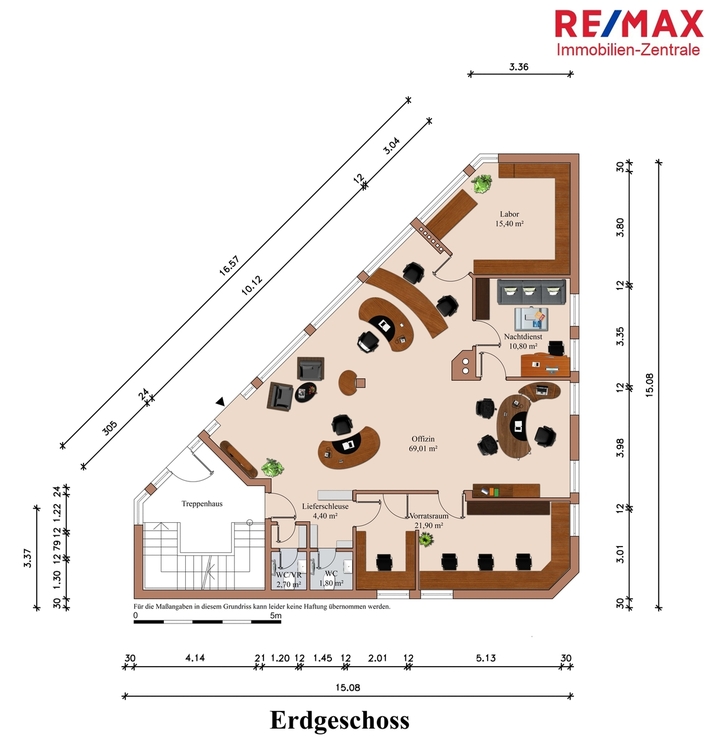 Eine Gewähr für die Richtigkeit sämtlicher im Exposé enthaltener Angaben und Abmessungen wird trotz sorgfältiger Bearbeitung von Daten, Bildern und Informationen nicht übernommen.