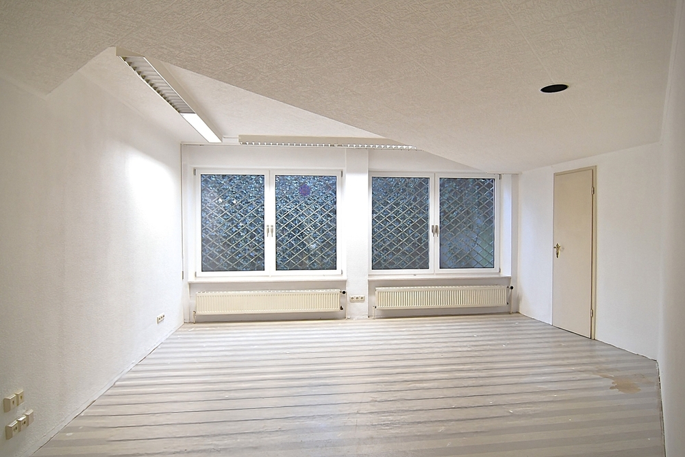 Im Erdgeschoss befindet sich die großzügig verglaste Verkaufsfläche, die aber auch als Büro oder Geschäftsstelle etc. dienen kann. An die zentrale Fläche gliedern sich mehre weitere Räume und zwei WCs an. Im Untergeschoss verfügen Sie über einen weiteren, separaten, Bereich. Hier befinden sich zwei weitere Räume, die Werkstatt, Lager oder ggf. auch Arbeitsplatz sein könnten. Auch auf dieser Ebene finden Sie ein WC vor.