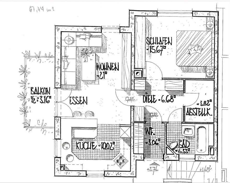 Zimmeranzahl :2 Gesamtgröße :ca. 67,00 m² Baujahr :1993 Stand vom :28.04.2026