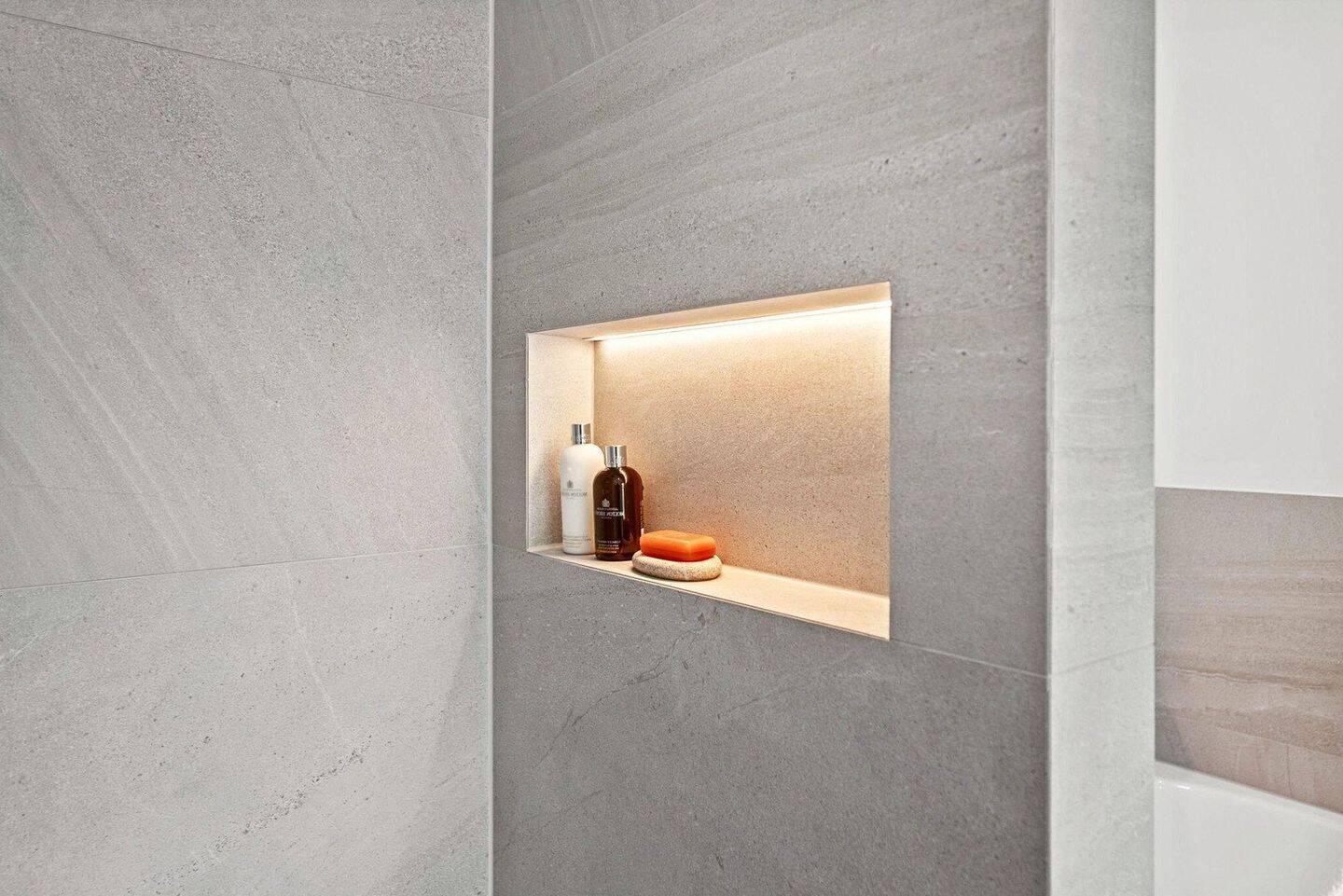 • Beleuchtete Wandnischen im Bad -