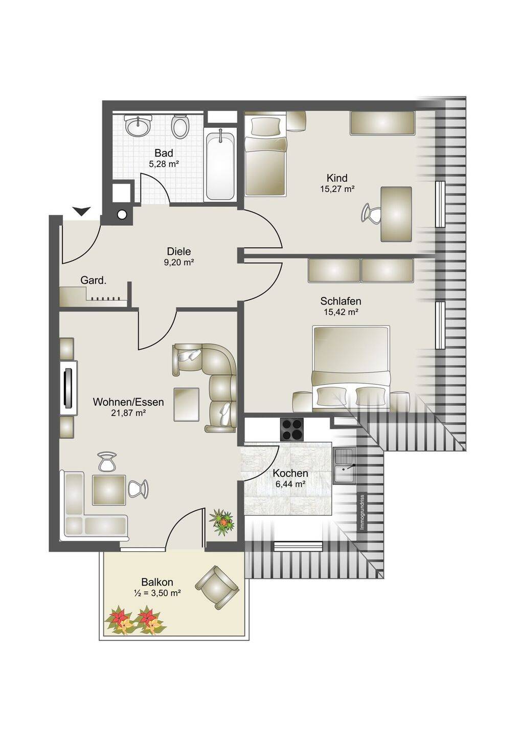 Wohnfläche:ca. 77,00 m²
