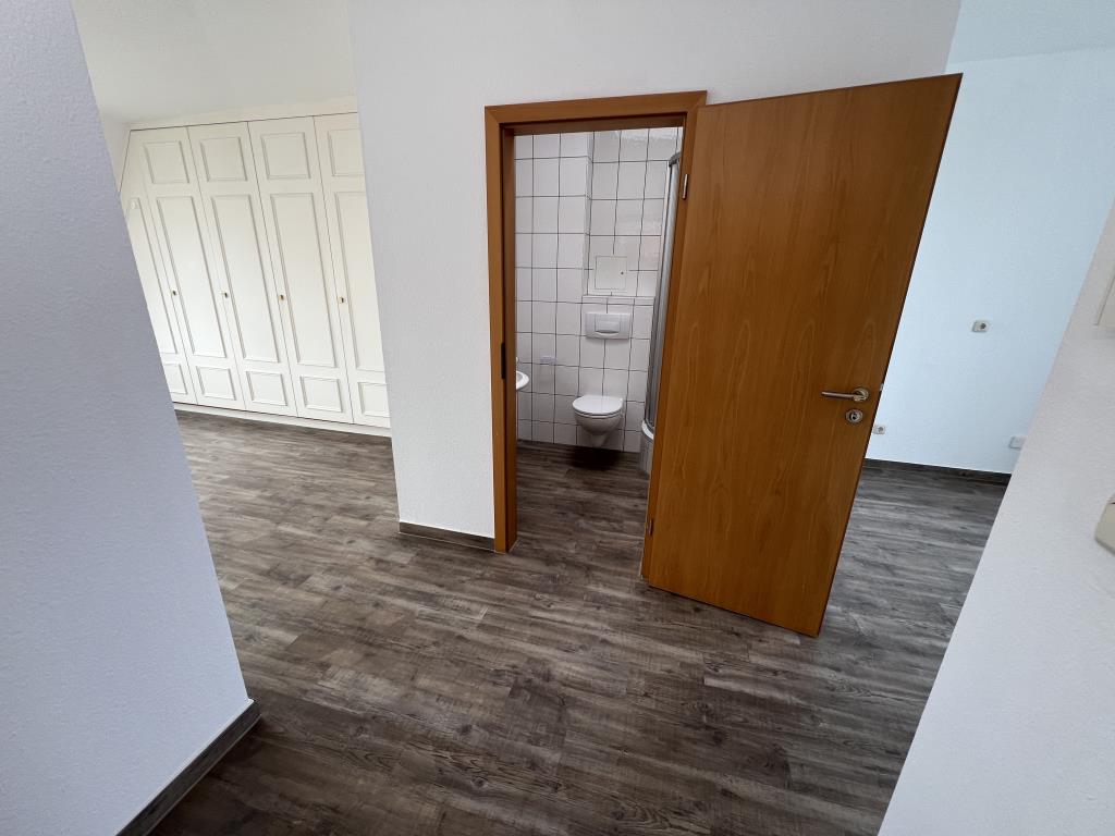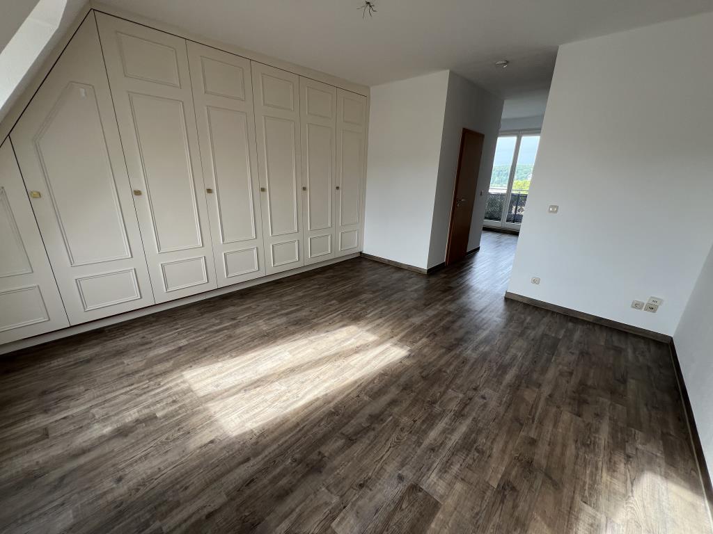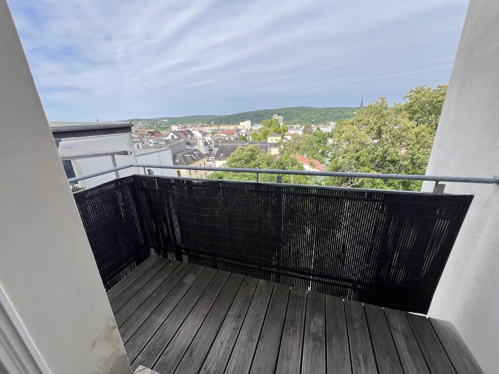 * Das helle Wohnzimmer mit Kamin schafft eine warme und behagliche Atmosphäre – ideal für entspannte Abende zu Hause. * Im Schlafzimmer sorgt ein maßgefertigter Einbauschrank für viel Stauraum, ohne Wohnfläche zu nehmen – perfekt für ein aufgeräumtes, ruhiges Raumgefühl. * Die große Terrasse mit weitem Blick über die Stadt ist ein echtes Highlight. Hier gewinnen Sie einen besonderen Rückzugsort im Freien, der Ihren Wohnraum spürbar erweitert. * Wohn- und Schlafräume sind mit pflegeleichtem Laminat bzw. modernen Fliesen ausgestattet – praktisch, stilvoll und leicht sauber zu halten. * Das Hauptbad bietet mit Wanne, Dusche, Waschbecken und Dachflächenfenster viel Komfort und Tageslicht – ideal für einen entspannten Start in den Tag. * Ein weiteres Bad mit Dusche und Dachflächenfenster sorgt für zusätzlichen Komfort, besonders in Haushalten mit mehreren Personen. * Ein separates Gäste-WC, ebenfalls mit Dachflächenfenster, macht den Wohnalltag besonders angenehm für Sie und Ihre Besucher. * Für Ordnung sorgt ein praktischer Abstellraum, der Ihnen zusätzlichen Platz für Alltägliches bietet. * Eine Klingel mit Wechselsprechanlage schafft Sicherheit und Komfort im Alltag. * Zusätzlich steht Ihnen ein eigener Kelleranteil zur Verfügung – ideal für Dinge, die man nicht täglich benötigt.