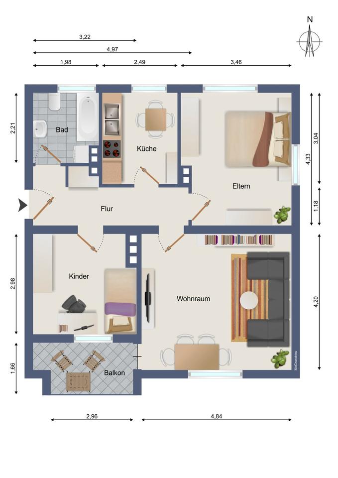Gesamtgröße:ca. 64,75 m²