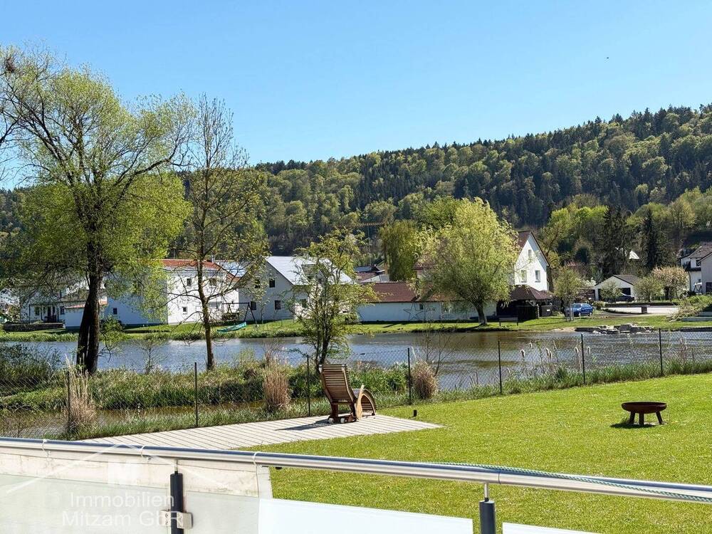 Ausblick Terrasse - Einmalige Traumlage direkt an der Altmühl: 3-Zimmer-Erdgeschoss-Whg. mit EBK und Garage