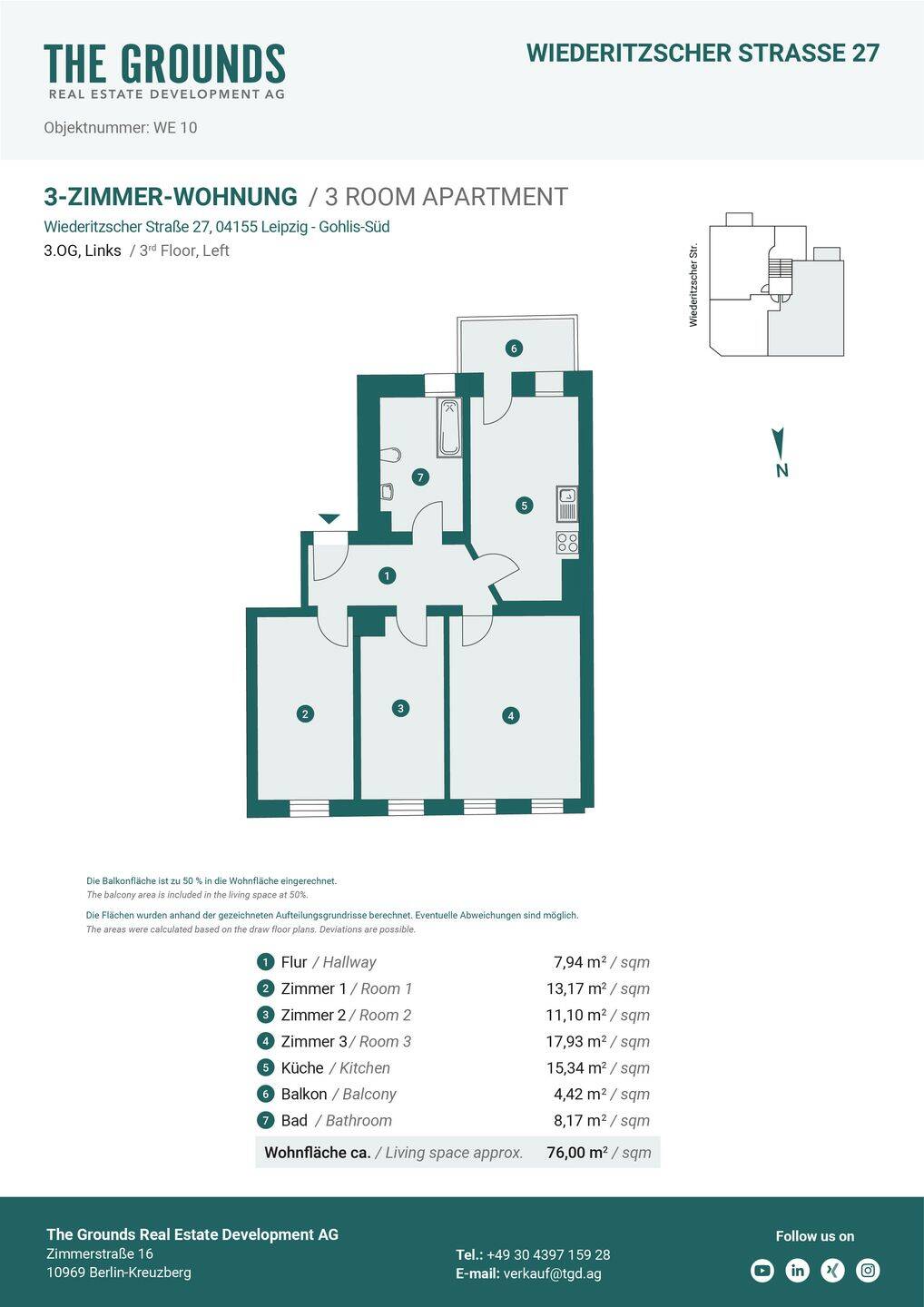 Wohnfläche:ca. 76,00 m²
